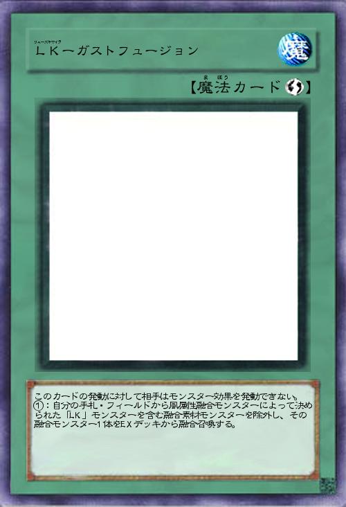 | このカードの発動に対して相手はモンスター効果を発動できない。 ①:自分の手札・フィールドから風属性融合モンスターによって決められた「LK」モンスターを含む融合素材モンスターを除外し、その融合モンスター1体をEXデッキから融合召喚する。 | |||
