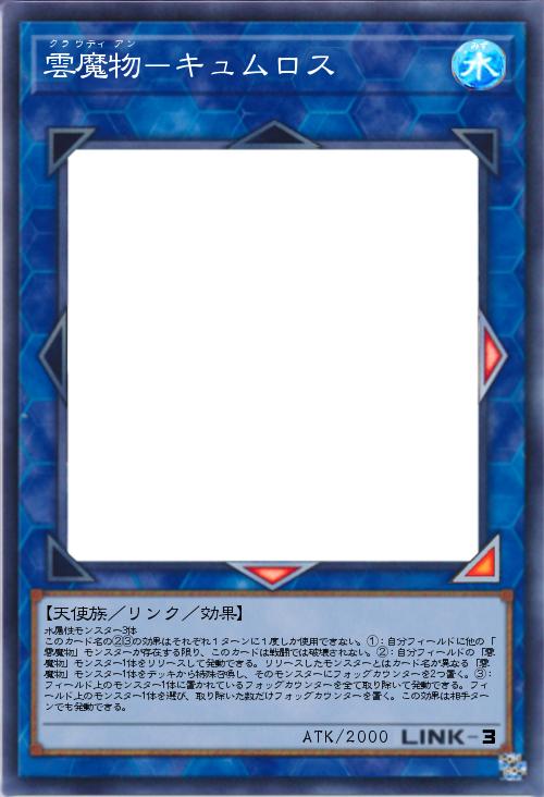 | 水属性モンスター3体 このカード名の②③の効果はそれぞれ1ターンに1度しか使用できない。①:自分フィールドに他の「雲魔物」モンスターが存在する限り、このカードは戦闘では破壊されない。②:自分フィールドの「雲魔物」モンスター1体をリリースして発動できる。リリースしたモンスターとはカード名が異なる「雲魔物」モンスター1体をデッキから特殊召喚し、そのモンスターにフォッグカウンターを2つ置く。③:フィールド上のモンスター1体に置かれているフォッグカウンターを全て取り除いて発動できる。フィールド上のモンスター1体を選び、取り除いた数だけフォッグカウンターを置く。この効果は相手ターンでも発動できる。 | |||