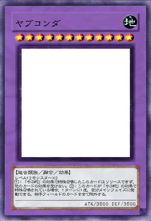 | レベル12モンスター×2 ①:「やぶ蛇」の効果で特殊召喚したこのカードはリリースできず、他のカードの効果を受けない。②:このカードが「やぶ蛇」の効果で特殊召喚されている場合、1ターンに1度、自分メインフェイズに発動できる。相手フィールドのカードを全て除外する。 | |||