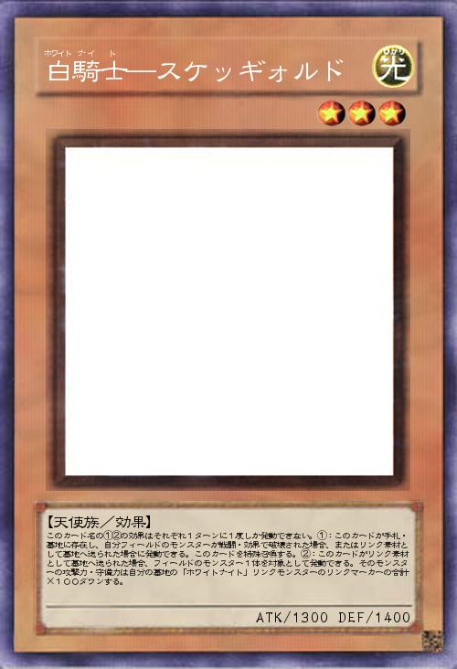 | このカード名の①②の効果はそれぞれ1ターンに1度しか発動できない。①:このカードが手札・墓地に存在し、自分フィールドのモンスターが戦闘・効果で破壊された場合、またはリンク素材として墓地へ送られた場合に発動できる。このカードを特殊召喚する。②:このカードがリンク素材として墓地へ送られた場合、フィールドのモンスター1体を対象として発動できる。そのモンスターの攻撃力・守備力は自分の墓地の「ホワイトナイト」リンクモンスターのリンクマーカーの合計×100ダウンする。 | |||