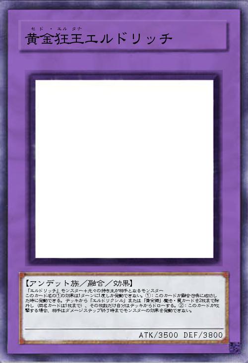| 「エルドリッチ」モンスター+元々の持ち主が相手となるモンスター このカード名の①の効果は1ターンに1度しか発動できない。①:このカードが融合召喚に成功した時に発動できる。デッキから「エルドリクシル」または「黄金郷」魔法・罠カードを2枚まで除外し(同名カードは1枚まで)、その枚数だけ自分はデッキからドローする。②:このカードが攻撃する場合、相手はダメージステップ終了時までモンスターの効果を発動できない。 | |||