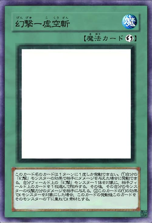 | このカード名のカードは1ターンに1度しか発動できない。①自分の「幻撃」モンスターの効果で相手にダメージを与えた場合に発動できる。自分フィールド上の「幻撃」モンスター1体を対象に、相手フィールド上のカードを1枚選んで除外する。その後、その自分のモンスターの攻撃力分のダメージを相手に与える。②このカードの①の効果でXモンスターを対象にした場合、このカードの発動後このカードをそのモンスターの下に重ねてX素材とする。 | |||