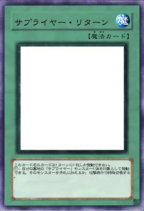 | このカード名のカードは1ターンに1枚しか発動できない。 ①:自分の墓地の「サプライヤー」モンスター1体を対象として発動できる。そのモンスターを手札に加えるか、攻撃表示で特殊召喚する。 | |||