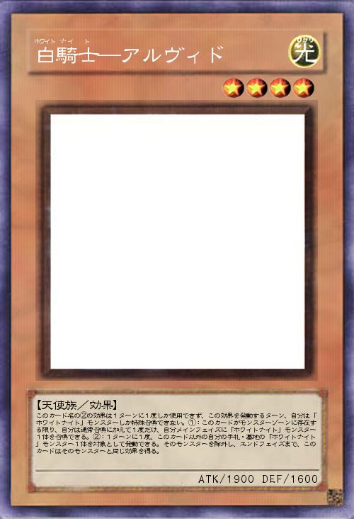 | このカード名の②の効果は1ターンに1度しか使用できず、この効果を発動するターン、自分は「ホワイトナイト」モンスターしか特殊召喚できない。①:このカードがモンスターゾーンに存在する限り、自分は通常召喚に加えて1度だけ、自分メインフェイズに「ホワイトナイト」モンスター1体を召喚できる。②:1ターンに1度、このカード以外の自分の手札・墓地の「ホワイトナイト」モンスター1体を対象として発動できる。そのモンスターを除外し、エンドフェイズまで、このカードはそのモンスターと同じ効果を得る。 | |||