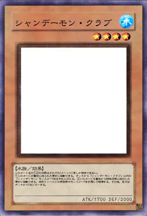 | このカード名の①②の効果はそれぞれ1ターンに1度しか使用できない。 ①このカードが墓地に送られた場合に発動できる。デッキから「シャンデーモン・クラブ」以外の「シャンデーモン」モンスター1体を手札に加える。②このカードを墓地から特殊召喚に成功した場合に発動できる。相手フィールドの表側表示モンスター1体を選んで破壊する。その後、自分はデッキから1枚ドローする。 | |||