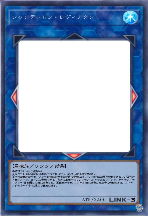 | 水属性モンスター2体以上 このカード名の②③の効果はそれぞれ1ターンに1度しか使用できない。 ①自分が墓地からモンスターを特殊召喚する効果の発動に対して、相手は効果を発動できない。②自分・相手メインフェイズに発動できる。自分の墓地からリンクモンスターではない「シャンデーモン」モンスター1体を選んで特殊召喚する。③墓地からモンスターが特殊召喚された時に発動できる。フィールドのカードを1枚選んで墓地に送る。 | |||