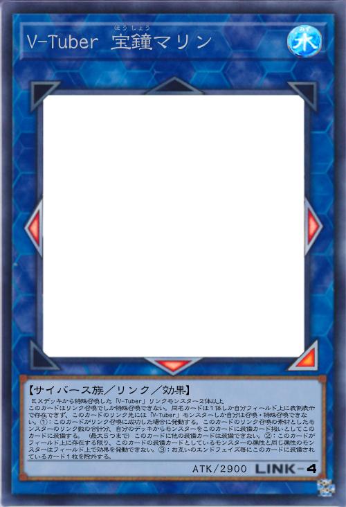 | EXデッキから特殊召喚した「V-Tuber」リンクモンスター2体以上 このカードはリンク召喚でしか特殊召喚できない。同名カードは1体しか自分フィールド上に表側表示で存在できず、このカードのリンク先には「V-Tuber」モンスターしか自分は召喚・特殊召喚できない。①:このカードがリンク召喚に成功した場合に発動する。このカードのリンク召喚の素材としたモンスターのリンク数の合計分、自分のデッキからモンスターをこのカードに装備カード扱いとしてこのカードに装備する。(最大5つまで)このカードに他の装備カードは装備できない。②:このカードがフィールド上に存在する限り、このカードの装備カードとしているモンスターの属性と同じ属性のモンスターはフィールド上で効果を発動できない。③:お互いのエンドフェイズ毎にこのカードに装備されているカード1枚を除外する。 | |||