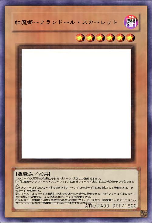 | このカードの②③④の効果はそれぞれ1ターンに1度しか発動できない。 ①「紅魔郷ーフランドール・スカーレット」は自分フィールド上に1枚しか表側表示で存在できない。 ②自分フィールド上のカード1枚及び相手フィールド上のカード1枚を対象として発動できる。そのカードを破壊する。 ③フィールド上のカードが戦闘・効果で破壊された場合に発動できる。相手フィールド上のカードを1枚選んで破壊する。この効果は相手ターンでも発動できる。 ④このカードが戦闘・効果で破壊された時に発動できる。デッキから「紅魔郷ーフランドール・スカーレット」以外の「紅魔郷」モンスター1体を手札に加える。 | |||