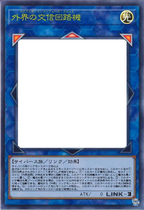 | サイバース族リンクモンスター2体以上 自分はこのカードのリンク先となるEXモンスターゾーンにモンスターを出せない。このカード名の①③の効果はそれぞれ1ターン1度ずつしか使用できない。①:このカードが墓地に存在し、自分フィールドに「外界空間」が存在する場合に発動できる。このカードを永続魔法カード扱いとして魔法&罠ゾーンに置く。②:魔法&罠ゾーンに存在するこのカードのリンクマーカーは有効となる。③:このカードが魔法&罠ゾーンに存在する場合、このカード以外の自分フィールドの表側表示のカード1枚を墓地に送って発動できる。墓地から「外界」リンクモンスター1体を選び、このカードのリンク先に特殊召喚する。④:このカードのリンク先にモンスターが存在し、このカードがフィールドから離れた場合に発動する。そのリンク先のモンスターは全て破壊される。 | |||