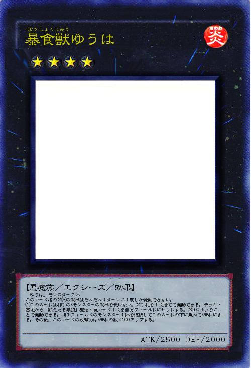 | 「ゆうは」モンスター2体 このカード名の②③の効果はそれぞれ1ターンに1度しか発動できない。 ①このカードは相手のXモンスターの効果を受けない。②手札を1枚捨てて発動できる。デッキ・墓地から「飢えたる銀狼」魔法・罠カード1枚を自分フィールドにセットする。③500LP払うことで発動できる。相手フィールドのモンスター1体を選択してこのカードの下に重ねてX素材にする。その後、このカードの攻撃力はX素材の数×100アップする。 | |||