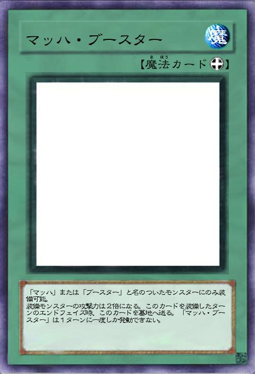 「マッハ」または「ブースター」と名のついたモンスターにのみ装備可能。 装備モンスターの攻撃力は2倍になる。このカードを装備したターンのエンドフェイズ時、このカードを墓地へ送る。「マッハ・ブースター」は1ターンに一度しか発動できない。 |