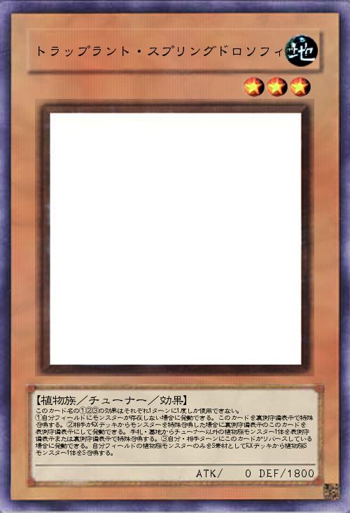 | このカード名の①②③の効果はそれぞれ1ターンに1度しか使用できない。 ①自分フィールドにモンスターが存在しない場合に発動できる。このカードを裏側守備表示で特殊召喚する。②相手がEXデッキからモンスターを特殊召喚した場合に裏側守備表示のこのカードを表側守備表示にして発動できる。手札・墓地からチューナー以外の植物族モンスター1体を表側守備表示または裏側守備表示で特殊召喚する。③自分・相手ターンにこのカードがリバースしている場合に発動できる。自分フィールドの植物族モンスターのみをS素材としてEXデッキから植物族Sモンスター1体をS召喚する。 | |||