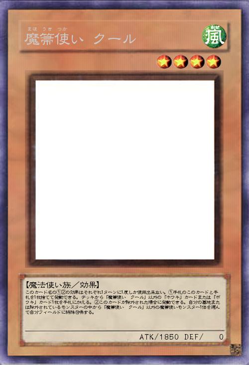 | このカード名の①②の効果はそれぞれ1ターンに1度しか使用出来ない。①手札のこのカードと手札を1枚捨てて発動できる。デッキから「魔箒使い クール」以外の「ホウキ」カードまたは「ボウキ」カード1枚を手札に加える。②このカードが除外された場合に発動できる。自分の墓地または除外されているモンスターの中から「魔箒使い クール」以外の魔箒使いモンスター1体を選んで自分フィールドに特殊召喚する。 | |||