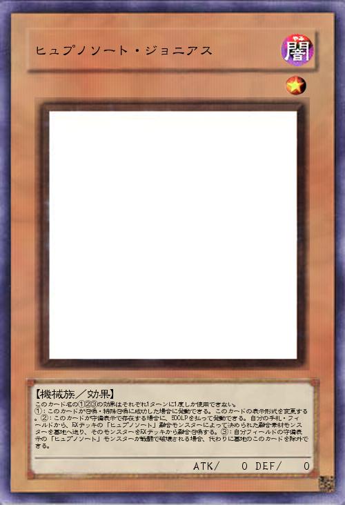 | このカード名の①②③の効果はそれぞれ1ターンに1度しか使用できない。 ①:このカードが召喚・特殊召喚に成功した場合に発動できる。このカードの表示形式を変更する。②:このカードが守備表示で存在する場合に、500LPを払って発動できる。自分の手札・フィールドから、EXデッキの「ヒュプノソート」融合モンスターによって決められた融合素材モンスターを墓地へ送り、そのモンスターをEXデッキから融合召喚する。③:自分フィールドの守備表示の「ヒュプノソート」モンスターが戦闘で破壊される場合、代わりに墓地のこのカードを除外できる。 | |||