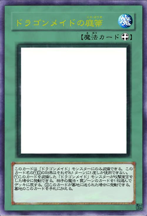 | このカードは「ドラゴンメイド」モンスターにのみ装備できる。このカード名の①②の効果はそれぞれ1ターンに1度しか使用できない。①このカードを装備した「ドラゴンメイド」モンスターが攻撃宣言をした場合に発動できる。相手の魔法・罠ゾーンのカードを1枚選んでデッキに戻する。②このカードが墓地に送られた場合に発動できる。墓地のこのカードを手札に加える。 | |||