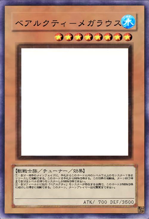 | ①:自分・相手のメインフェイズに、手札からこのカード以外のレベル7以上のモンスター1体をリリースして発動できる。このカードを手札から特殊召喚する。この効果の発動後、ターン終了時まで自分はレベルを持つモンスターしか特殊召喚できない。 ②:自分フィールドに他の「ベアルクティ」モンスターが存在する状態で、このカードが特殊召喚に成功した場合に発動できる。このターン、ターンプレイヤーは攻撃宣言できない。 | |||