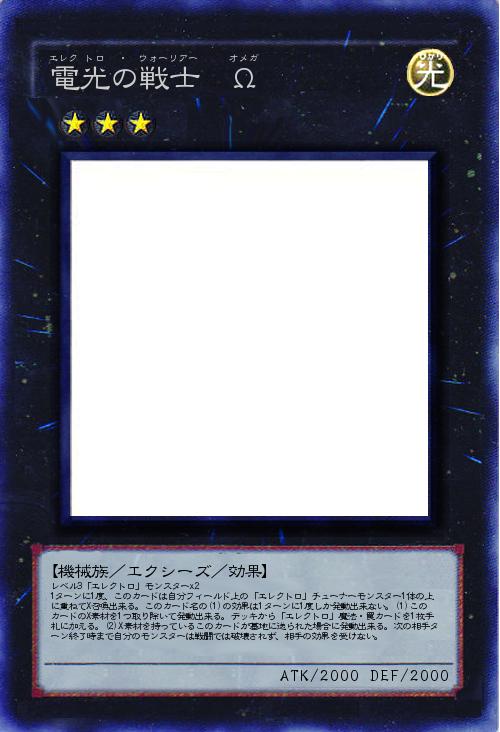 | レベル3「エレクトロ」モンスターx2 1ターンに1度、このカードは自分フィールド上の「エレクトロ」チューナーモンスター1体の上に重ねてX召喚出来る。このカード名の(1)の効果は1ターンに1度しか発動出来ない。(1)このカードのX素材を1つ取り除いて発動出来る。デッキから「エレクトロ」魔法・罠カードを1枚手札に加える。(2)X素材を持っているこのカードが墓地に送られた場合に発動出来る。次の相手ターン終了時まで自分のモンスターは戦闘では破壊されず、相手の効果を受けない。 | |||