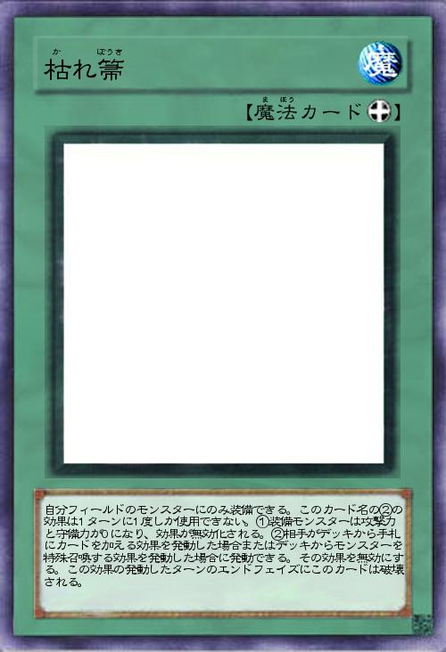 | 自分フィールドのモンスターにのみ装備できる。このカード名の②の効果は1ターンに1度しか使用できない。①装備モンスターは攻撃力と守備力が0になり、効果が無効化される。②相手がデッキから手札にカードを加える効果を発動した場合またはデッキからモンスターを特殊召喚する効果を発動した場合に発動できる。その効果を無効にする。この効果の発動したターンのエンドフェイズにこのカードは破壊される。 | |||