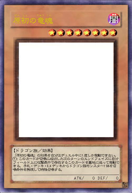 | 「原初の竜魂」の効果を自分はデュエル中に1度しか発動できない。①:このカードが召喚に成功した次のターンのエンドフェイズに自分フィールド上に攻撃表示で存在するこのカードを墓地に送って発動できる。手札・デッキ・EXデッキからドラゴン族モンスター1体を召喚条件を無視して特殊召喚する。 | |||