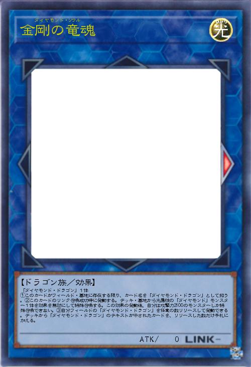 | 「ダイヤモンド・ドラゴン」1体 ①このカードがフィールド・墓地に存在する限り、カード名を「ダイヤモンド・ドラゴン」として扱う。②このカードのリンク召喚成功時に発動する。デッキ・墓地から光属性の「ダイヤモンド」モンスター1体を効果を無効にして特殊召喚する。この効果の発動後、自分は攻撃力2100のモンスターしか特殊召喚できない。③自分フィールドの「ダイヤモンド・ドラゴン」を任意の数リリースして発動できる。デッキから「ダイヤモンド・ドラゴン」のテキストが示されたカードを、リリースした数だけ手札に加える。 | |||