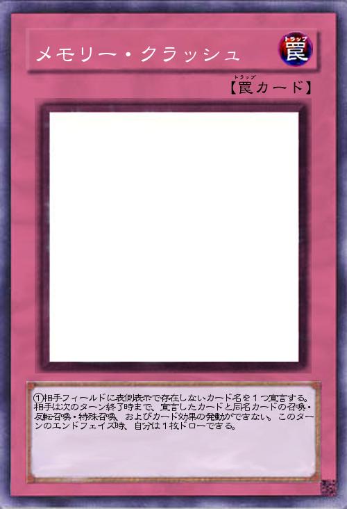 | ①相手フィールドに表側表示で存在しないカード名を1つ宣言する。相手は次のターン終了時まで、宣言したカードと同名カードの召喚・反転召喚・特殊召喚、およびカード効果の発動ができない。このターンのエンドフェイズ時、自分は1枚ドローできる。 | |||