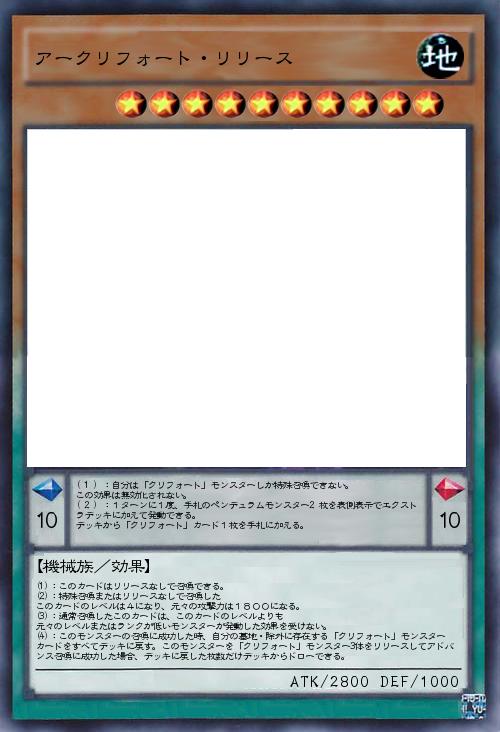 | (1):このカードはリリースなしで召喚できる。 (2):特殊召喚またはリリースなしで召喚した このカードのレベルは4になり、元々の攻撃力は1800になる。 (3):通常召喚したこのカードは、このカードのレベルよりも 元々のレベルまたはランクが低いモンスターが発動した効果を受けない。 (4):このモンスターの召喚に成功した時、自分の墓地・除外に存在する「クリフォート」モンスターカードをすべてデッキに戻す。このモンスターを「クリフォート」モンスター3体をリリースしてアドバンス召喚に成功した場合、デッキに戻した枚数だけデッキからドローできる。 | |||