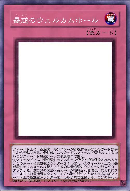 | フィールド上に「蠱惑魔」モンスターが存在する場合このカードは手札から発動できる。発動後、このカードはフィールド魔法としても扱い自分フィールド魔法ゾーンに表側表示で置く。 ①フィールド上に「蠱惑魔」モンスターが召喚・特殊召喚されたとき、このカードに蟲惑魔カウンターを1つ置く。②フィールド上の「蠱惑魔」モンスターの攻撃力・守備力は蠱惑魔カウンターの数X200アップする。③自分の魔法・罠カードが破壊される場合、代わりにフィールド上の蠱惑魔カウンターを2つ取り除くことができる。④フィールド上の蠱惑魔カウンターを4つ取り除き発動する。自分の手札・墓地から「蟲惑魔」モンスター1体を特殊召喚する。 | |||