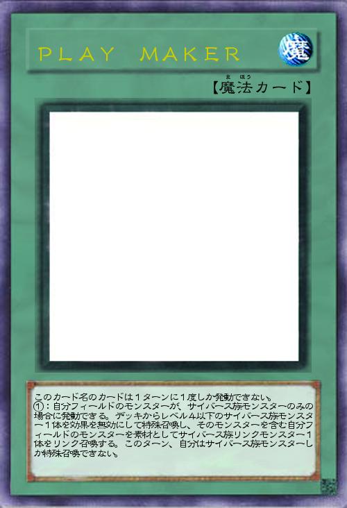 | このカード名のカードは1ターンに1度しか発動できない。 ①:自分フィールドのモンスターが、サイバース族モンスターのみの場合に発動できる。デッキからレベル4以下のサイバース族モンスター1体を効果を無効にして特殊召喚し、そのモンスターを含む自分フィールドのモンスターを素材としてサイバース族リンクモンスター1体をリンク召喚する。このターン、自分はサイバース族モンスターしか特殊召喚できない。 | |||