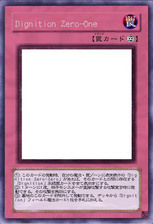 | ①:このカードの発動時、自分の魔法・罠ゾーンに表側表示の「Dignition Zero-Zero」があれば、そのカードとの間に存在する「Dignition」永続罠カードを全て表向きにする。 ②:1ターンに1度、相手モンスターが直接攻撃する攻撃宣言時に発動できる。その攻撃を無効にする。 ③:墓地のこのカードを除外して発動できる。デッキから「Dignition」フィールド魔法カード1枚を手札に加える。 | |||