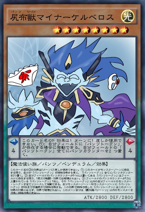| このカード名のP効果は1ターンに1度しか使用できない。①:自分フィールドに「パンツトークン」が存在する場合に発動できる。自分フィールドの「パンツトークン」全てにパンツカウンターを2つ置く。 | |||