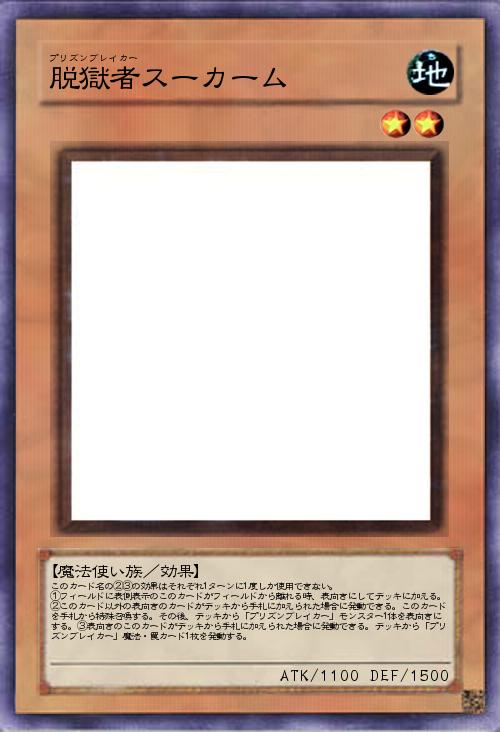 | このカード名の②③の効果はそれぞれ1ターンに1度しか使用できない。 ①フィールドに表側表示のこのカードがフィールドから離れる時、表向きにしてデッキに加える。②このカード以外の表向きのカードがデッキから手札に加えられた場合に発動できる。このカードを手札から特殊召喚する。その後、デッキから「プリズンブレイカー」モンスター1体を表向きにする。③表向きのこのカードがデッキから手札に加えられた場合に発動できる。デッキから「プリズンブレイカー」魔法・罠カード1枚を発動する。 | |||