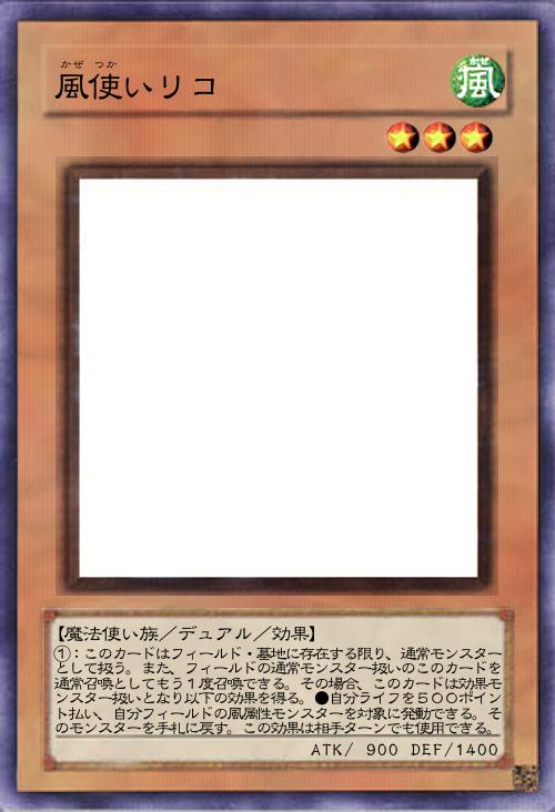 | ①:このカードはフィールド・墓地に存在する限り、通常モンスターとして扱う。また、フィールドの通常モンスター扱いのこのカードを通常召喚としてもう1度召喚できる。その場合、このカードは効果モンスター扱いとなり以下の効果を得る。●自分ライフを500ポイント払い、自分フィールドの風属性モンスターを対象に発動できる。そのモンスターを手札に戻す。この効果は相手ターンでも使用できる。 | |||