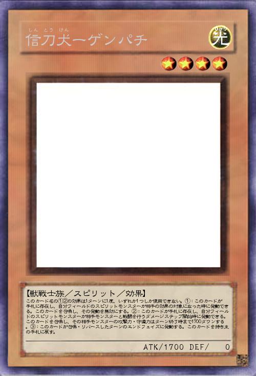 | このカード名の①②の効果は1ターンに1度、いずれか1つしか使用できない。①:このカードが手札に存在し、自分フィールドのスピリットモンスターが相手の効果の対象になった時に発動できる。このカードを召喚し、その発動を無効にする。②:このカードが手札に存在し、自分フィールドのスピリットモンスターが相手モンスターと戦闘を行うダメージステップ開始時に発動できる。このカードを召喚し、その相手モンスターの攻撃力・守備力はターン終了時まで1700ダウンする。③:このカードが召喚・リバースしたターンのエンドフェイズに発動する。このカードを持ち主の手札に戻す。 | |||