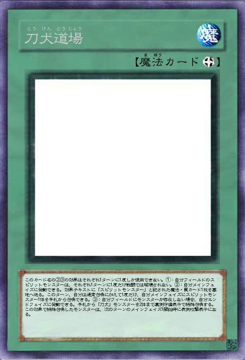 | このカード名の②③の効果はそれぞれ1ターンに1度しか使用できない。①:自分フィールドのスピリットモンスターは、それぞれ1ターンに1度だけ戦闘では破壊されない。②:自分メインフェイズに発動できる。効果テキストに「スピリットモンスター」と記された魔法・罠カード1枚を墓地へ送る。このターン、自分は通常召喚に加えて1度だけ、自分メインフェイズにスピリットモンスター1体を手札から召喚できる。③:自分フィールドにモンスターが存在しない場合、自分エンドフェイズに発動できる。手札から「刀犬」モンスターを2体まで裏側守備表示で特殊召喚する。この効果で特殊召喚したモンスターは、次のターンのメインフェイズ1開始時に表側攻撃表示になる。 | |||