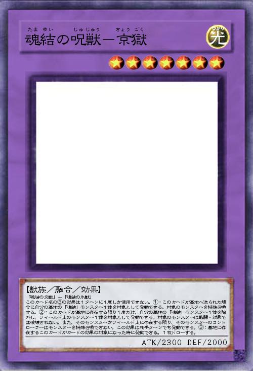 | 「魂結の炎獣」+「魂結の氷獣」 このカード名の③の効果は1ターンに1度しか使用できない。①:このカードが墓地へ送られた場合に自分の墓地の「魂結」モンスター1体を対象として発動できる。対象のモンスターを特殊召喚する。②:このカードが墓地に存在する限り1度だけ、自分の墓地の「魂結」モンスター1体を除外し、フィールド上のモンスター1体を対象として発動できる。対象のモンスターは戦闘・効果では破壊されない。また、そのモンスターがフィールド上に存在する限り、そのモンスターのコントローラーはモンスターを特殊召喚できない。この効果は相手ターンでも発動できる。③:墓地に存在するこのカードがカードの効果の対象になった時に発動できる。1枚ドローする。 | |||
