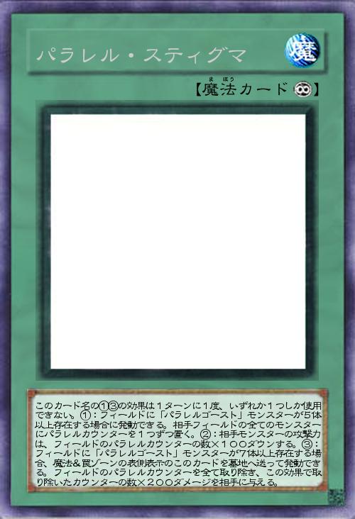 | このカード名の①③の効果は1ターンに1度、いずれか1つしか使用できない。①:フィールドに「パラレルゴースト」モンスターが5体以上存在する場合に発動できる。相手フィールドの全てのモンスターにパラレルカウンターを1つずつ置く。②:相手モンスターの攻撃力は、フィールドのパラレルカウンターの数×100ダウンする。③:フィールドに「パラレルゴースト」モンスターが7体以上存在する場合、魔法&罠ゾーンの表側表示のこのカードを墓地へ送って発動できる。フィールドのパラレルカウンターを全て取り除き、この効果で取り除いたカウンターの数×200ダメージを相手に与える。 | |||