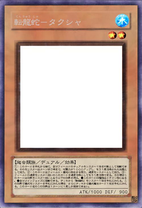 | ①:このカードを手札から捨て、自分フィールドのデュアルモンスター1体を対象として発動できる。そのモンスターはターン終了時まで、攻撃力が1000アップし、もう1度召喚された状態として扱う。②:このカードはフィールド・墓地に存在する限り、通常モンスターとして扱う。③:フィールドの通常モンスター扱いのこのカードを通常召喚としてもう1度召喚できる。その場合このカードは効果モンスター扱いとなり以下の効果を得る。●このカードの種族はドラゴン族になる。●自分メインフェイズに発動できる。デッキから「転龍蛇」モンスター1体を手札に加える。この効果で儀式モンスターを手札に加えた場合、さらにデッキから儀式魔法カード1枚を手札に加える。このカード名のこの効果は1ターンに1度しか使用できない。 | |||