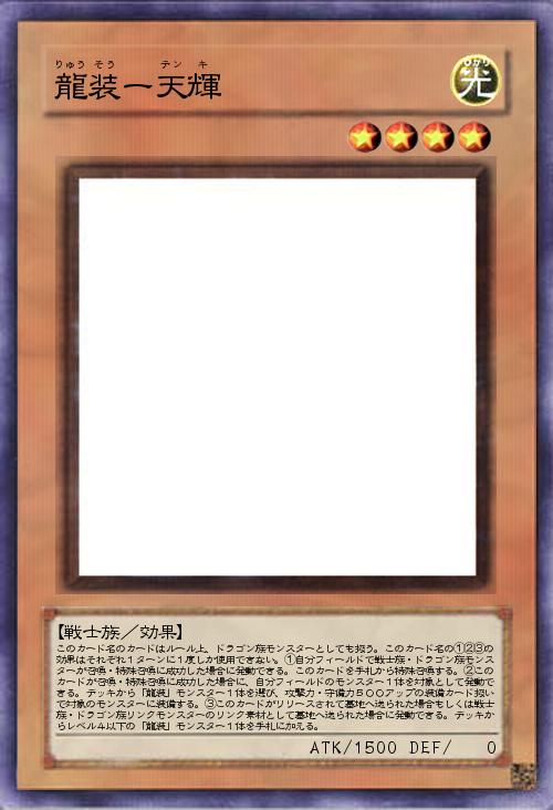 | このカード名のカードはルール上、ドラゴン族モンスターとしても扱う。このカード名の①②③の効果はそれぞれ1ターンに1度しか使用できない。①自分フィールドで戦士族・ドラゴン族モンスターが召喚・特殊召喚に成功した場合に発動できる。このカードを手札から特殊召喚する。②このカードが召喚・特殊召喚に成功した場合に、自分フィールドのモンスター1体を対象として発動できる。デッキから「龍装」モンスター1体を選び、攻撃力・守備力500アップの装備カード扱いで対象のモンスターに装備する。③このカードがリリースされて墓地へ送られた場合もしくは戦士族・ドラゴン族リンクモンスターのリンク素材として墓地へ送られた場合に発動できる。デッキからレベル4以下の「龍装」モンスター1体を手札に加える。 | |||