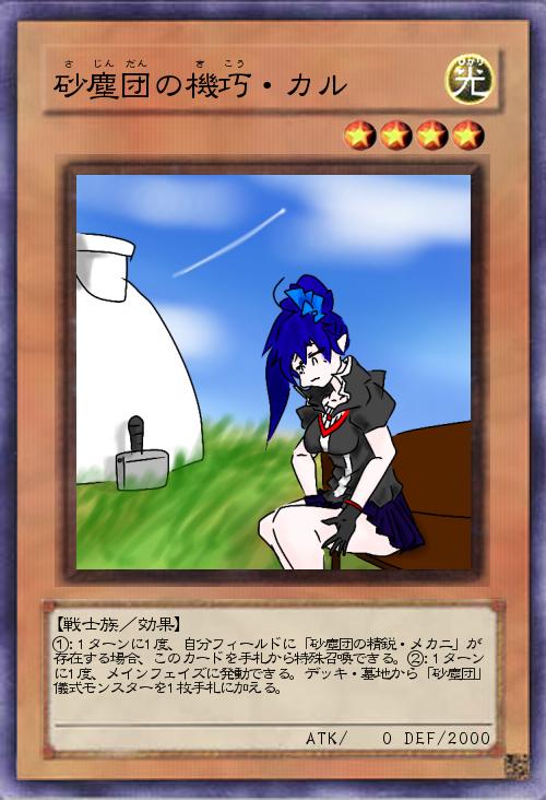 | ①:1ターンに1度、自分フィールドに「砂塵団の精鋭・メカニ」が存在する場合、このカードを手札から特殊召喚できる。②:1ターンに1度、メインフェイズに発動できる。デッキ・墓地から「砂塵団」儀式モンスターを1枚手札に加える。 | |||