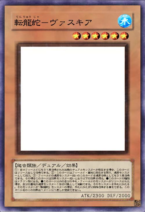 | ①:自分フィールドにもう1度召喚された状態のデュアルモンスターが存在する場合、このカードはリリースなしで召喚できる。②:このカードはフィールド・墓地に存在する限り、通常モンスターとして扱う。③:フィールドの通常モンスター扱いのこのカードを通常召喚としてもう1度召喚できる。その場合このカードは効果モンスター扱いとなり以下の効果を得る。●このカードの種族はドラゴン族になる。●このカード以外の自分の手札・フィールドのモンスターがリリースされた場合、自分の墓地の通常モンスター1体を対象として発動できる。そのモンスターを手札に加える。そのモンスターが「転龍蛇」モンスターの場合、手札に加えずに特殊召喚する事もできる。このカード名のこの効果は1ターンに1度しか使用できない。 | |||