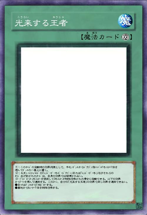 | (1):このカードの発動時の効果処理として、手札・デッキからドラゴン族・レベル1モンスター1体を選んでデッキの一番上に置く。 (2):お互いにフィールドの「レッド・デーモンズ・ドラゴン」または「レッド・デーモン」及びそれらのカード名が記されたカードは、自身の効果では破壊されない。 (3):「リゾネーター」モンスターを使用してSモンスターが特殊召喚された場合に発動できる。以下の効果から1つを選んで適用する。このターン、自分の「光来する王者」の効果で同じ効果を適用できない。 ●自分はデッキから1枚ドローする。 ●墓地からチューナー1体を特殊召喚する。 | |||