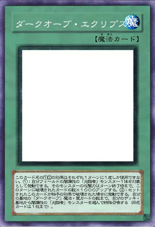 | このカード名の①②の効果はそれぞれ1ターンに1度しか使用できない。①:自分フィールドの闇属性の「光臨者」モンスター1体を対象として発動できる。そのモンスターの攻撃力はターン終了時まで、このターンに破壊されたカードの数×1000アップする。②:セットされたこのカードが相手の効果で破壊された場合に発動できる。自分の墓地の「ダークオーブ」魔法・罠カードの数まで、自分のデッキ・墓地から闇属性の「光臨者」モンスターを選んで特殊召喚する(同名カードは1枚まで)。 | |||