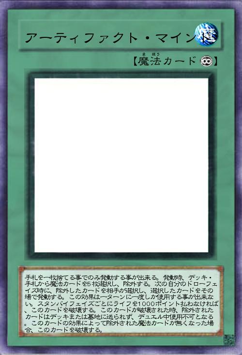 | 手札を一枚捨てる事でのみ発動する事が出来る。発動時、デッキ・手札から魔法カードを5枚選択し、除外する。次の自分のドローフェイズ時に、除外したカードを相手が選択し、選択したカードをその場で発動する。この効果は一ターンに一度しか使用する事が出来ない。スタンバイフェイズごとにライフを1000ポイント払わなければ、このカードを破壊する。このカードが破壊された時、除外されたカードはデッキまたは墓地に送られず、デュエル中使用不可となる。このカードの効果によって除外された魔法カードが無くなった場合、このカードを破壊する。 | |||