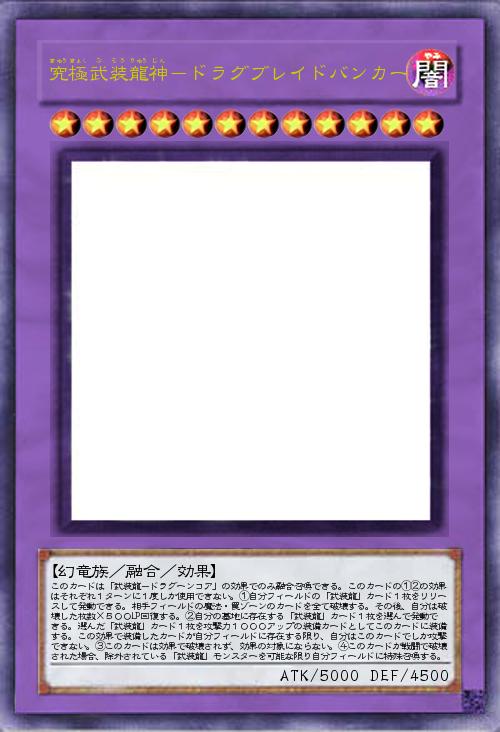 | このカードは「武装龍-ドラグーンコア」の効果でのみ融合召喚できる。このカードの①②の効果はそれぞれ1ターンに1度しか使用できない。①自分フィールドの「武装龍」カード1枚をリリースして発動できる。相手フィールドの魔法・罠ゾーンのカードを全て破壊する。その後、自分は破壊した枚数×500LP回復する。②自分の墓地に存在する「武装龍」カード1枚を選んで発動できる。選んだ「武装龍」カード1枚を攻撃力1000アップの装備カードとしてこのカードに装備する。この効果で装備したカードが自分フィールドに存在する限り、自分はこのカードでしか攻撃できない。③このカードは効果で破壊されず、効果の対象にならない。④このカードが戦闘で破壊された場合、除外されている「武装龍」モンスターを可能な限り自分フィールドに特殊召喚する。 | |||