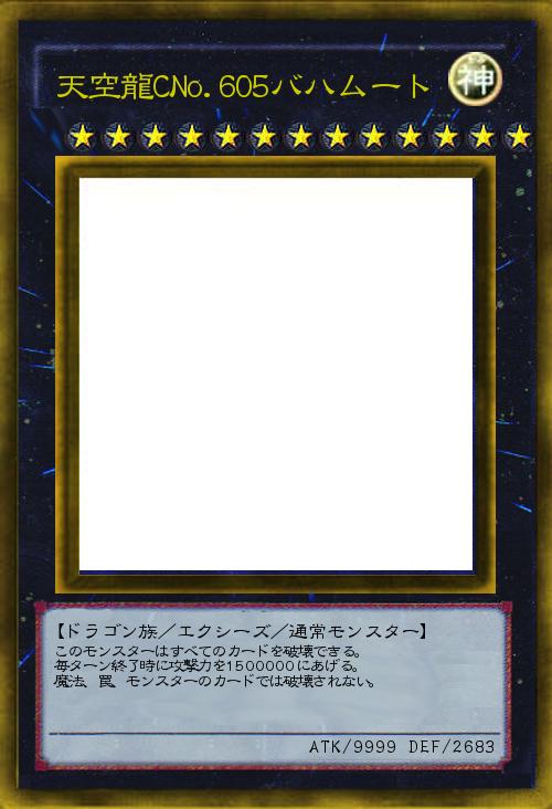 | このモンスターはすべてのカードを破壊できる。 毎ターン終了時に攻撃力を1500000にあげる。 魔法、罠、モンスターのカードでは破壊されない。 | |||