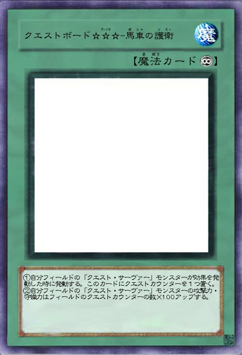 | ①自分フィールドの「クエスト・サーヴァー」モンスターが効果を発動した時に発動する。このカードにクエストカウンターを1つ置く。②自分フィールドの「クエスト・サーヴァー」モンスターの攻撃力・守備力はフィールドのクエストカウンターの数×100アップする。 | |||