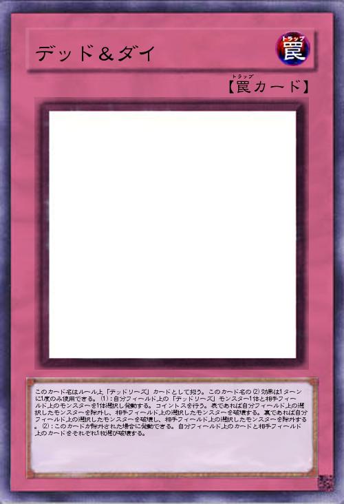 | このカード名はルール上「デッドリーズ」カードとして扱う。このカード名の(2)効果は1ターンに1度のみ使用できる。(1):自分フィールド上の「デッドリーズ」モンスター1体と相手フィールド上のモンスターを1体選択し発動する。コイントスを行う。表であれば自分フィールド上の選択したモンスターを除外し、相手フィールド上の選択したモンスターを破壊する。裏であれば自分フィールド上の選択したモンスターを破壊し、相手フィールド上の選択したモンスターを除外する。(2):このカードが除外された場合に発動できる。自分フィールド上のカードと相手フィールド上のカードをそれぞれ1枚選び破壊する。 | |||