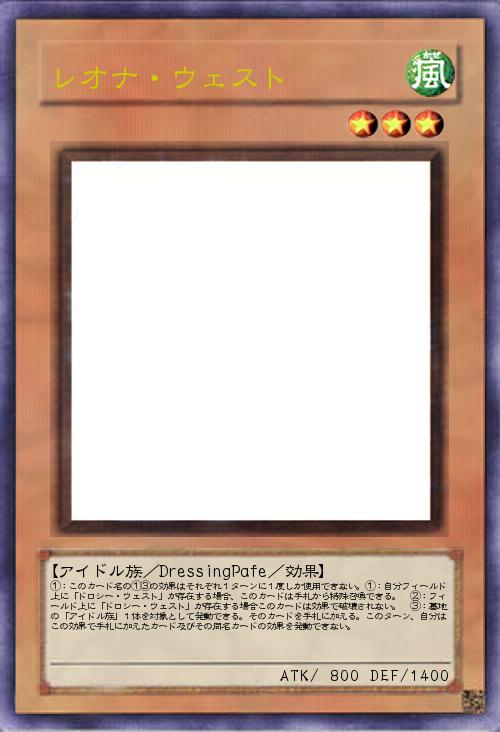 | ①:このカード名の①③の効果はそれぞれ1ターンに1度しか使用できない。①:自分フィールド上に「ドロシー・ウェスト」が存在する場合、このカードは手札から特殊召喚できる。 ②:フィールド上に「ドロシー・ウェスト」が存在する場合このカードは効果で破壊されない。 ③:墓地の「アイドル族」1体を対象として発動できる。そのカードを手札に加える。このターン、自分はこの効果で手札に加えたカード及びその同名カードの効果を発動できない。 | |||