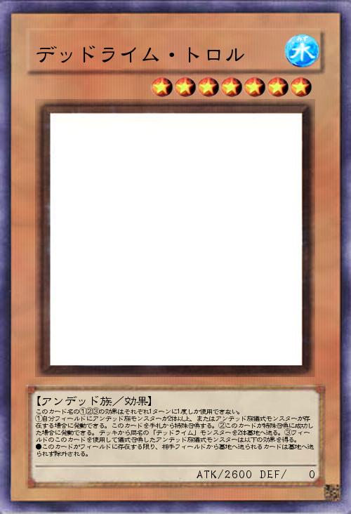 | このカード名の①②③の効果はそれぞれ1ターンに1度しか使用できない。 ①自分フィールドにアンデッド族モンスターが2体以上、またはアンデッド族儀式モンスターが存在する場合に発動できる。このカードを手札から特殊召喚する。②このカードが特殊召喚に成功した場合に発動できる。デッキから同名の「デッドライム」モンスターを2体墓地へ送る。③フィールドのこのカードを使用して儀式召喚したアンデッド族儀式モンスターは以下の効果を得る。 ●このカードがフィールドに存在する限り、相手フィールドから墓地へ送られるカードは墓地へ送られず除外される。 | |||