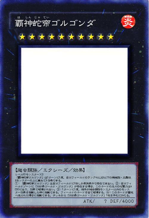 | レベル10モンスター×3 「覇神蛇帝ゴルゴンダ」は1ターンに1度、自分フィールドのランク4以上9以下の機械族・炎属性Xモンスターの上に重ねてX召喚できる。 ①:「覇神蛇帝ゴルゴンダ」は自分フィールドに1体しか表側表示で存在できない。②:自分フィールドゾーンに「大砂界ゴールド・ゴルゴンダ」が存在する場合、このカードの元々の攻撃力は4000になり、効果で破壊されない。③:1ターンに1度、相手が爬虫類族モンスター以外のモンスター効果を発動した時に発動できる。フィールドのカードを全て破壊する。④:このカードが墓地へ送られた場合に発動できる。デッキから「大砂界ゴールド・ゴルゴンダ」1枚を手札に加える。 | |||